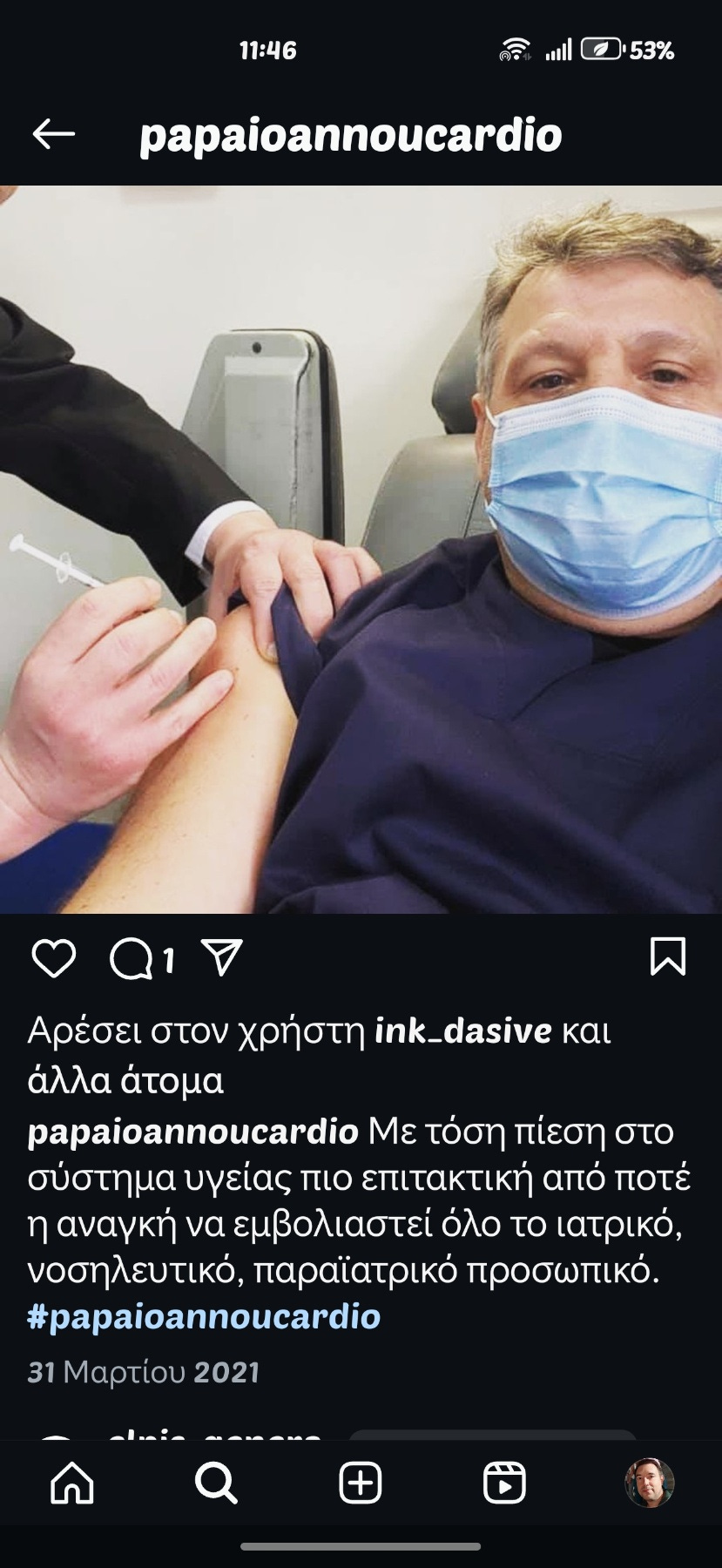 «Ναι, υπάρχει και κόσμος που φοβάται, η αλήθεια είναι, ότι μπορεί να έχουν κάποια σύνδεση τα εμβόλια με καρδιαγγειακές παθήσεις κ.λπ. Καλά κάνετε και το τονίζετε».