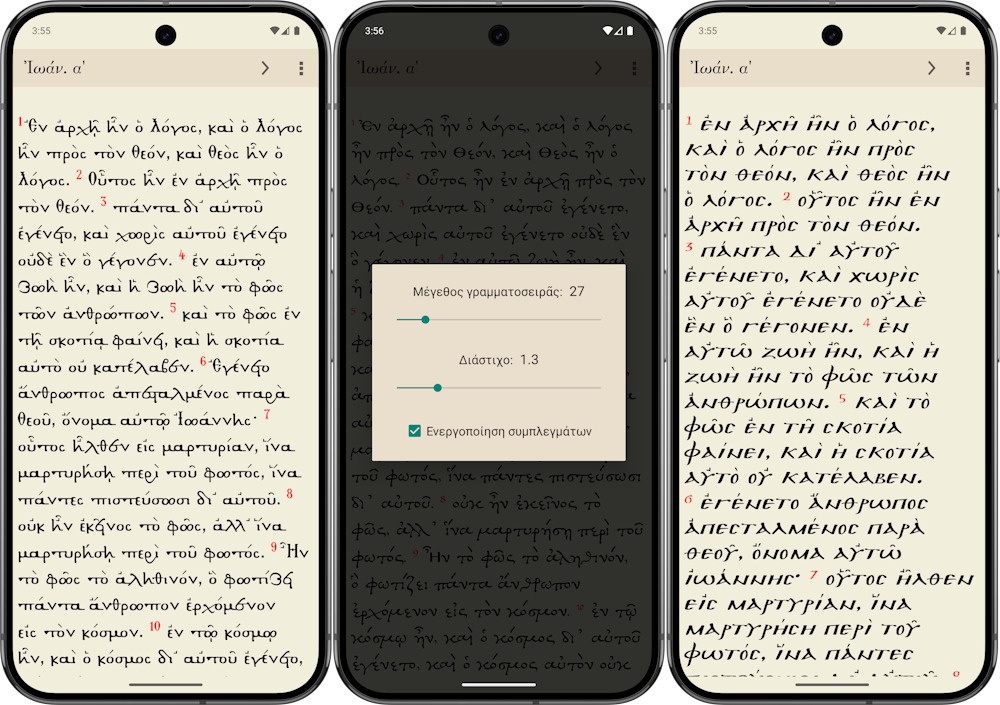 * Επιλογή μεγέθους γραμματοσειράς, διαστίχου κειμένου, και συμπλεγμάτων (για γραμματοσειρές που τα υποστηρίζουν)