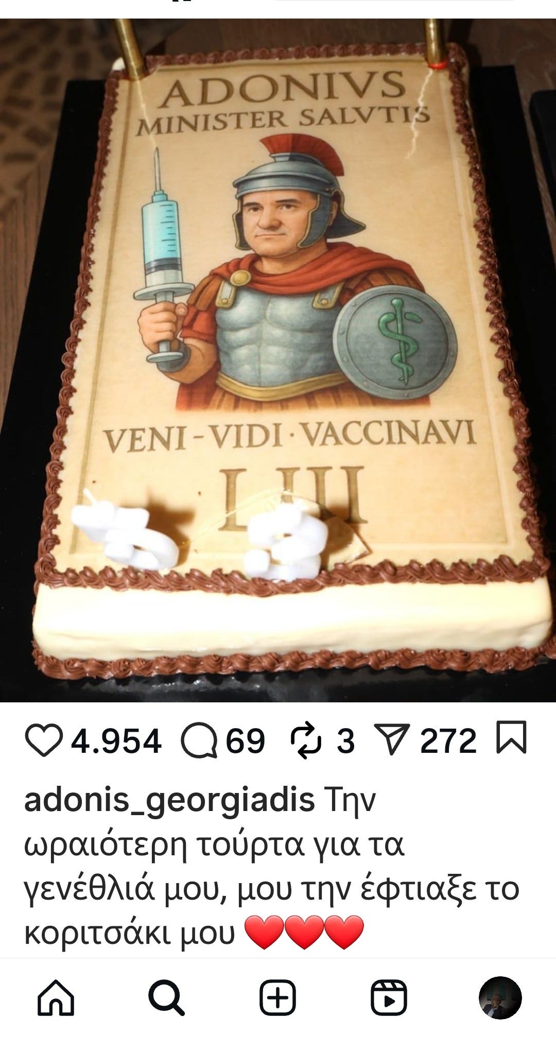 Η παραπάνω φωτογραφία αναρτήθηκε από τον υπουργό Υγείας Αδωνόσπυρο Γεωργιάδη στα Μέσα Κοινωνικής Δικτύωσης (facebook, instagram κ.λπ.) με λεζάντα την εξής φράση: